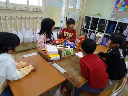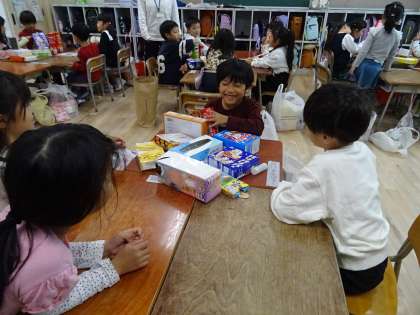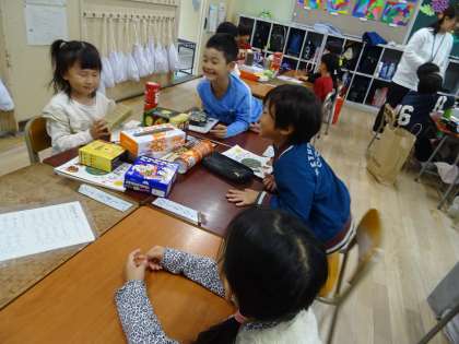 似ている形を集めよう。目を閉じて触って形を当てました。
