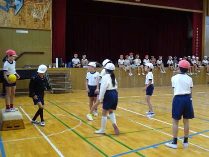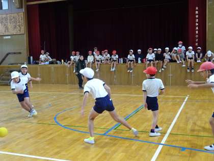 友だちの声援に応えて、みんな一生懸命ボールを追いかけました。