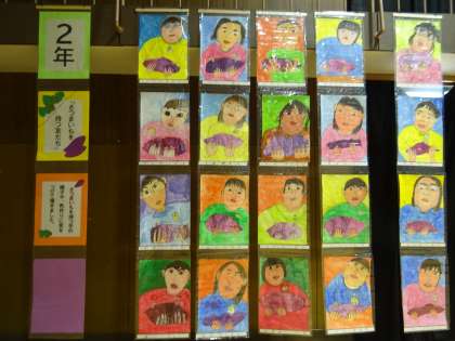2年生の作品「さつまいもを持つ友達」です。