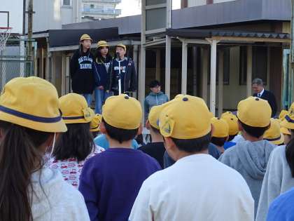 校長先生から「姿勢を正そう」とお話がありました。寒くなると背中が丸くなりがちですが、背筋を伸ばすことが心を正すことにもつながります。図書委員会からは、図書ボランティアの方への感謝の気持ちをメッセージカードで伝えようと呼びかけがありました。