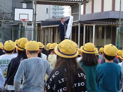 校長先生から「みんなで使うものを大切にしよう」とお話がありました。ものを大切にできる人は、人のことも大切にできる人です。最近、下校中にふざけあって車にひかれそうになったところを危機一髪で見守り隊の方に助けていただくということがありました。登下校中のみんなの命を見守ってくださっている見守り隊の方に感謝の気持ちをこめてあいさつしましょう。絵画コンクールの表彰がありました。