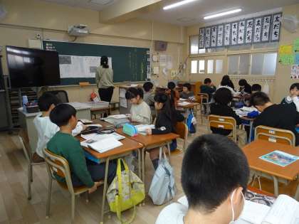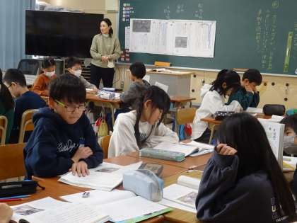 『カミツキガメが日本の自然の中にいてはいけない理由と事例を読み取ろう』班ごとに相談して意見を交流しました。