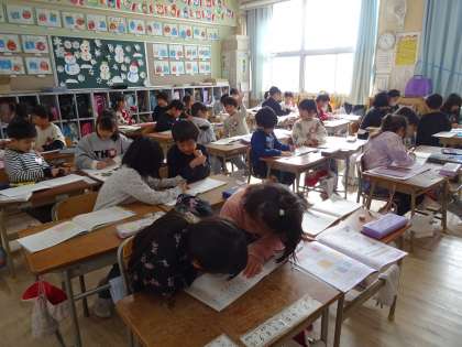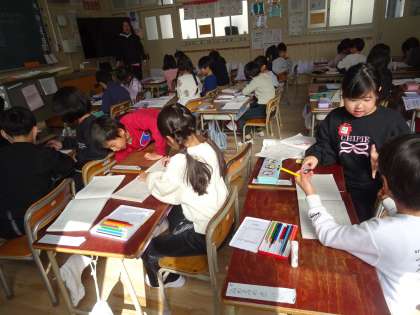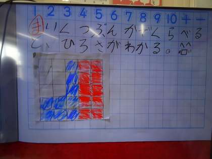 じゃんけんでマスの陣取りゲームをしながら、広さの感覚をつかんでいきました。