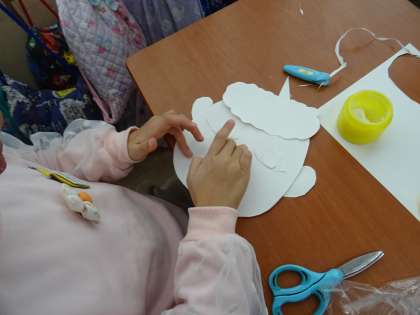 画用紙を切って貼って『鬼の顔』を作っていました。