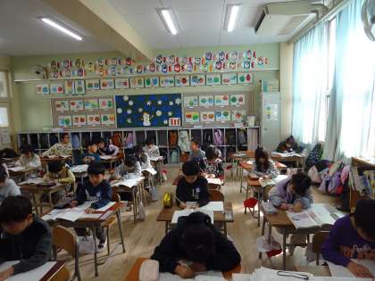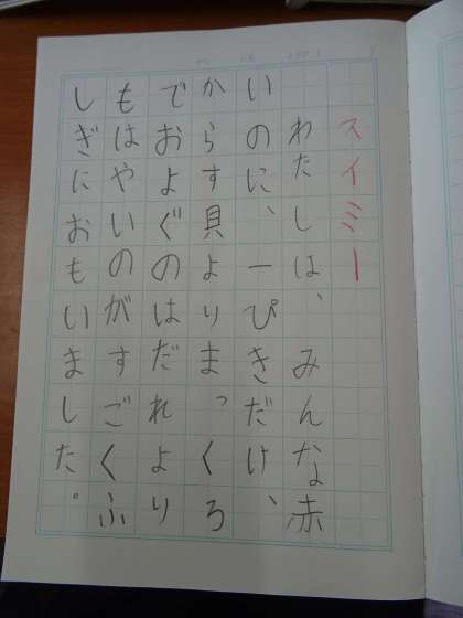 お話を読んでおもしろかったところやふしぎに思ったところをノートに書いて友だちにも見てもらいました。