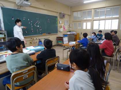 サッカーのチーム分けの話し合い活動です。一人ひとりが活躍できるチームになるように考えを出し合っていました。