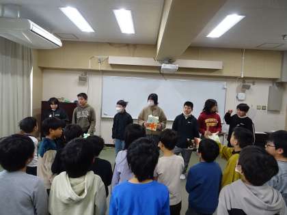 1年生から5年生が感謝の気持ちをこめて書いたメッセージカードを6年生に渡しました。