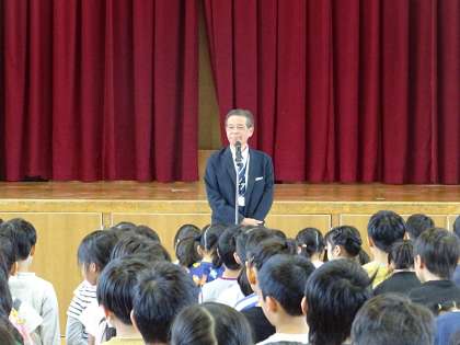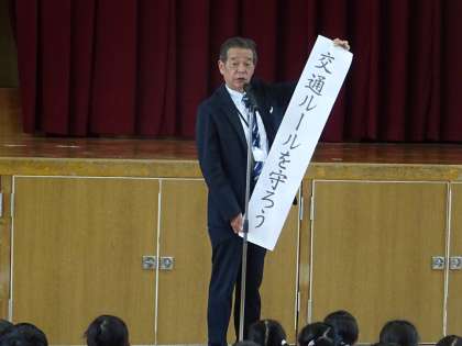 校長先生からめあて「交通ルールを守ろう」のお話がありました。また、マナー・礼儀作法や進んでごみを拾うことやトイレのスリッパをそろえることなどの大切さをお話されました。