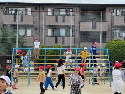 サッカー、ドッジボール、おにごっこ、遊具…など、思い思いに遊んでいます。みんなとっても楽しそうです。
