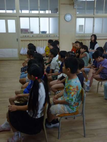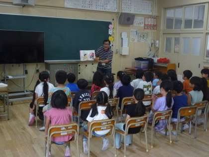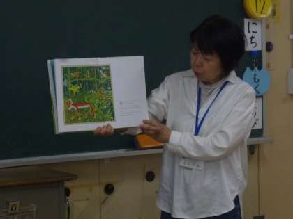 2時間目、1年2組で、絵本の読み聞かせをしていただきました。