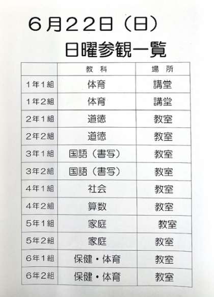 6月22日(日)は日曜参観・引き渡し訓練を実施します。