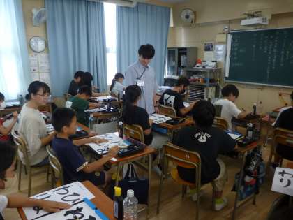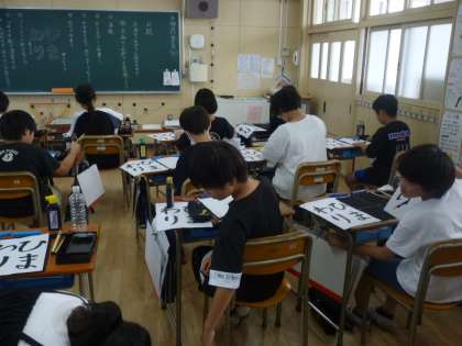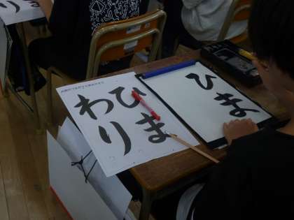 「ひまわり」を毛筆で書きました。点・画のつながりと読みやすさに注意し、4枚書いて一番きれいなものを提出しました。