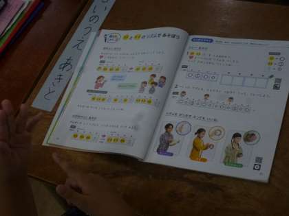 先生から「すごいね! 上手」とほめてもらいうれしそうでした。