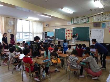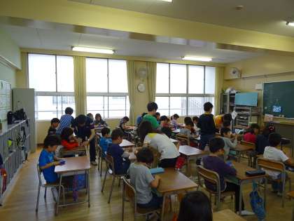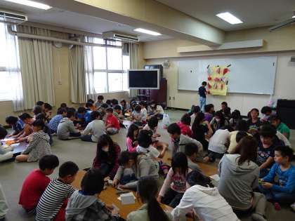 1年生と2年生の教室に6年生の子ども達が折り鶴の折り方を教えにいきました。6年生の実行委員が「平和への願いをこめて折り鶴をつくるのを協力してください。」と呼びかけ、説明をしながら折り方のわからない子には6年生のお兄さん、お姉さんが優しく丁寧に教えてくれていました。