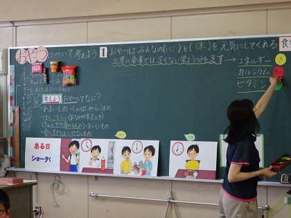 4年生の子ども達は、普段食べているおやつを思い浮かべながらいろいろな意見や考えを言っていました。