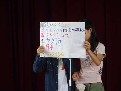健康に関するクイズや、いろいろな動物の体の仕組みなどに関するクイズなどがあり、子ども達はたてわり班で相談して答えを話し合って楽しんでいました。