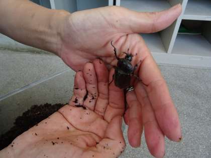 今まで土の中にいたカブトムシの幼虫が成虫し、姿を見せ始めました。これからたくさんのカブト虫が見られるので、子ども達も楽しみにしています。