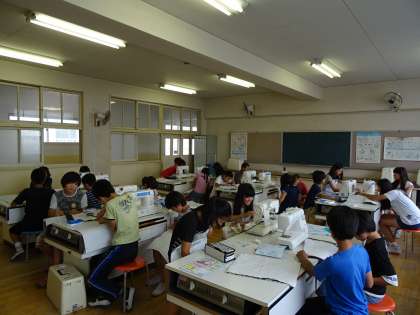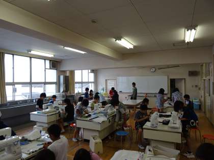 5年生のときに学習した裁縫の学習を思い出しながら、上手に手縫いをしたりミシンを扱ったりする子どもたちが多く見られました。作業に少し戸惑う子もいましたが、先生や友だちのアドバイスで作業を進めることができ、どの子も集中して活動に取り組んでいました。