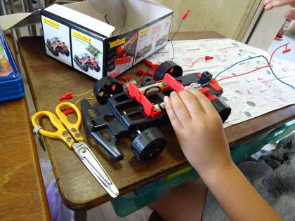 説明書を見ながら組み立てたり、友だちと教え合って組み立てたりして、みんな真剣に活動に取り組んでいました。
