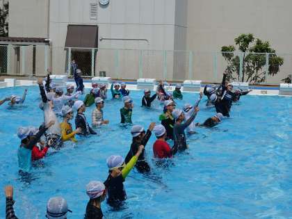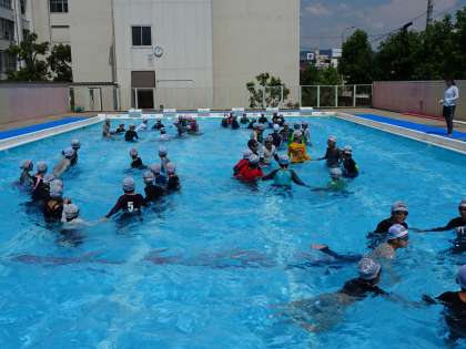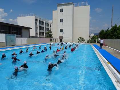 衣服を着て水泳学習をする「着衣水泳」を6年生がおこないました。