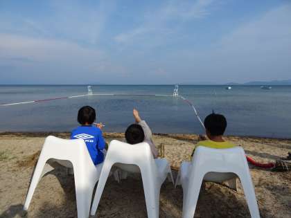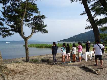 かき氷を食べながら、琵琶湖を眺める子ども達の様子です。