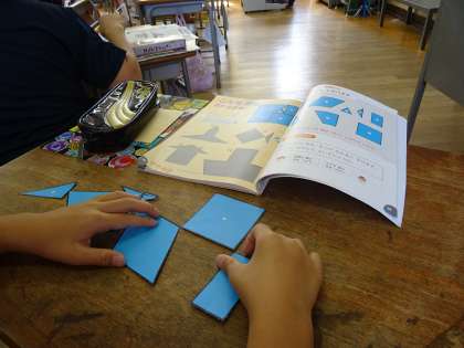 2年生の学習の様子です。算数の形づくりの学習をしました。