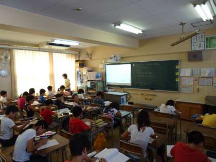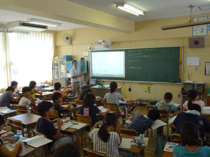 5年生の学習の様子です。プロジェクターとパソコンを活用し、デジタル教材をつかって算数の学習をしました。