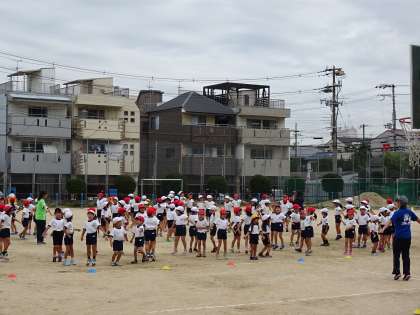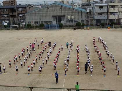 今日から運動場で1年生と2年生のダンスの練習がはじまりました。