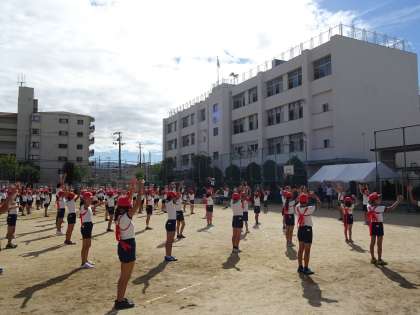 児童会の児童は開会式、閉会式の司会進行などをしっかりとやり、給食委員会の児童も体操をがんばってやっていました。