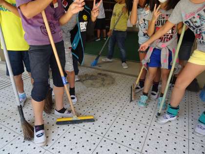 講堂前の掃除では、たくさんのごみを集めてくれました。