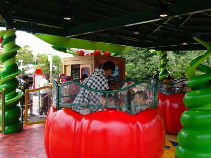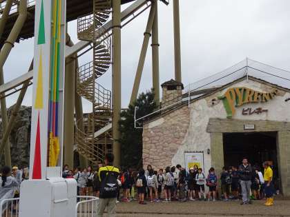 雨がやんでからピレネー(ジェットコースター)に乗ることができ、たくさんの人が並んでいました。