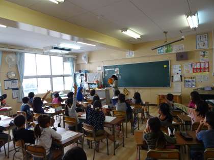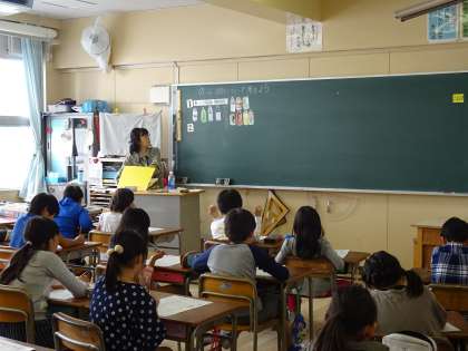 加美南部小学校から栄養士の先生に来校していただき、3年生は飲み物について教えてもらいました。