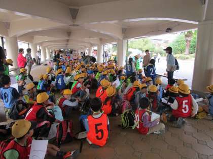 午前中は、1年生と2年生が一緒のグループになってオリエンテーリングをしました。2年生がリーダーになって、1年生の子どもたちを上手にリードしてくれました。
