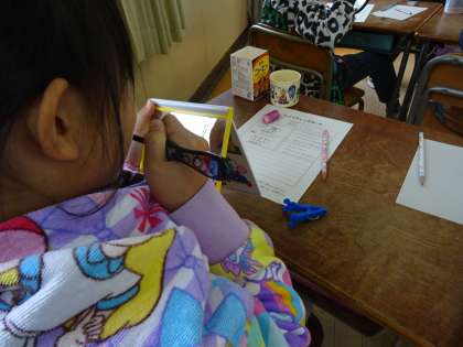 鏡を見ながら丁寧に歯を磨いていました。子ども達はとても真剣に取り組んでいました。