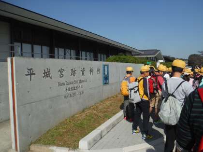 資料館での見学では、たくさんの遺跡や資料に子ども達は興味津々でした。また、ガイドさんの説明を聞きながら見学ができたので、子ども達はより理解を深め、平城宮について知ることができたようでした。