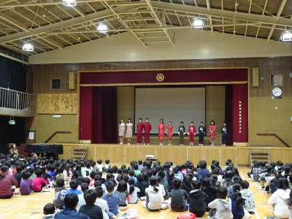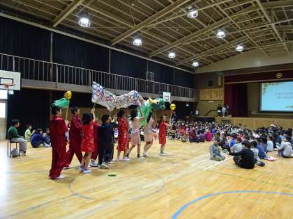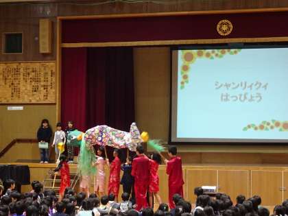 入場時の龍の登場には、見ていた子ども達からは歓声があがっていました。そして、詩の暗唱の発表がおわると大きな拍手がおくられていました。