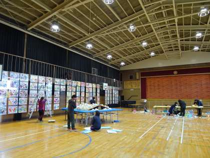 作品は、17日と18日、朝の8時50分から夕方の16時45分まで講堂で展示しています。