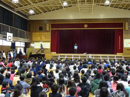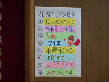 創立40周年を記念して、全校児童での集会をおこないました。