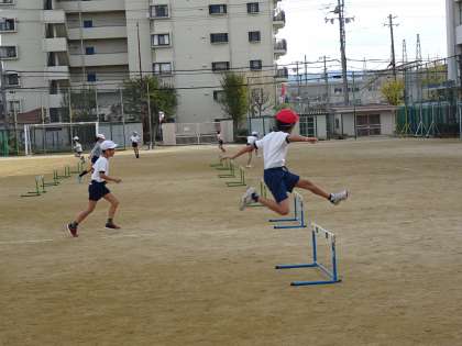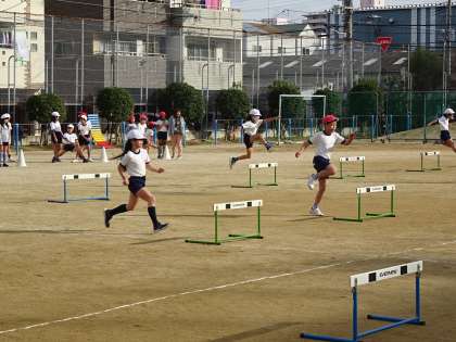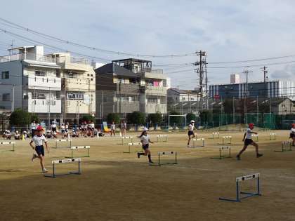 今日の学習では、「3歩でハードルをこえよう」「リズムよく走ろう」というめあてをもって取り組みました。そのめあてを意識しながら、何度も挑戦している子ども達の姿がたくさん見られました。