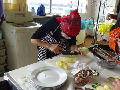 やはりじゃがいもの皮むきに苦戦している子はいましたが、それでもがんばって皮むきを最後までていねいにしていました。
