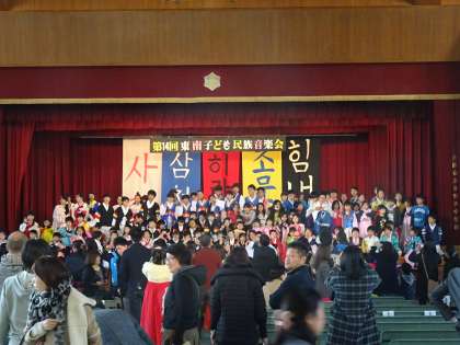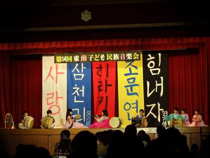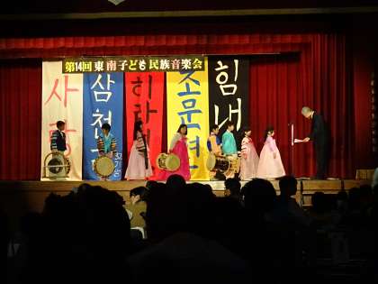 東南子ども民族音楽会にオリニフェの子ども達は参加しました。たくさんの小学校や中学校が参加し、韓国・朝鮮につながりのある子ども達が集い合い、楽器演奏や劇などの発表をしました。