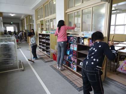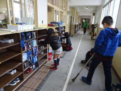 先週から取り組んでいる全校児童でのたてわり班清掃ですが、今日が活動の最終日でした。先週に引き続き、子ども達は一生懸命に自分の清掃場所を掃除し、班のみんなで協力してがんばっていました。特に5・6年生ががんばってくれました。