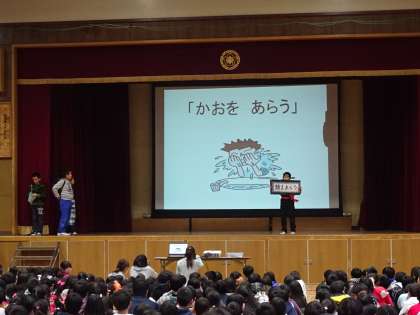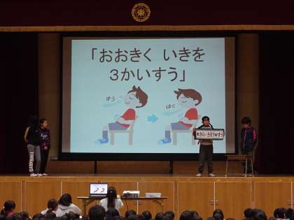 劇ではイライラしたときにどうしたらよいか、忍者が登場しアドバイスをするシーンがありました。今日の劇で見たことやお話をしていただいたことをこれからに活かしていってほしいです。