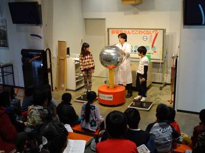サイエンスショーで、静電気のことについて教えてもらい、いろいろな実験を見せてもらいました。