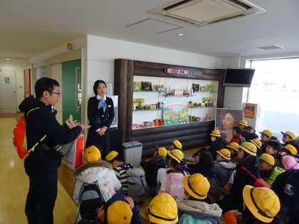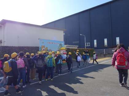 見学が終わったあとは、係の人に質問をしたり、お礼を言ったりして見学を終えました。その後にクラスごとで記念撮影をしました。