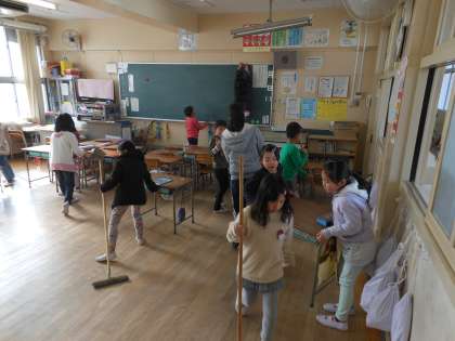 給食を食べた後は、全校でそうじをします。