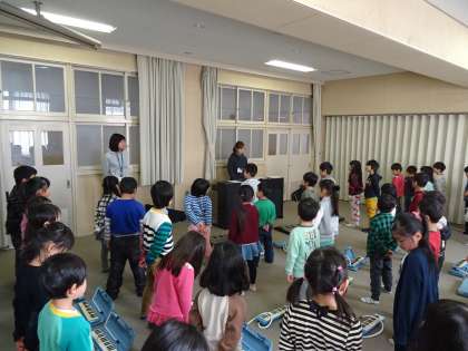 今日は1年生全員でよびかけ、歌、合奏の練習をしました。大きな声でよびかけを言ったり、元気よく歌を歌ったりするなど、子ども達はとても意欲的に練習をしていました。