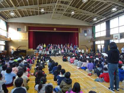 よびかけ、歌、合奏、とてもすばらしい発表を1年生の子ども達は全校児童の前で堂々と発表していました。