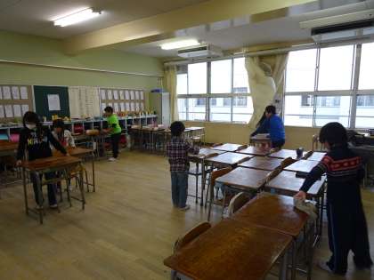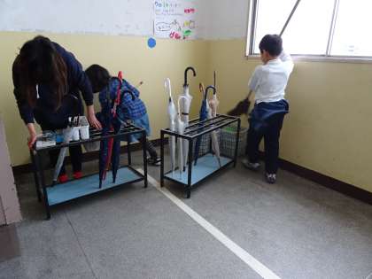 今日も班のみんなで協力し合って一生懸命にそうじをする姿があちらこちらで見られました。たてわり班での清掃活動は明日で終わりですが、子ども達にとっていい経験になっているようです。