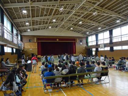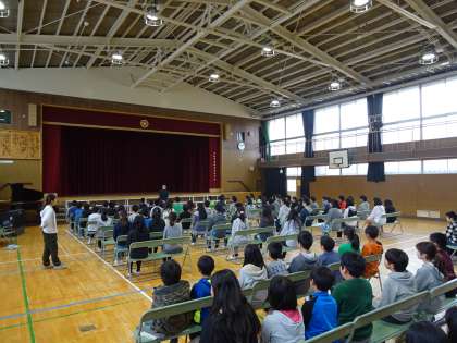 いよいよ卒業式の練習が本格的に始まり、今日は5年生と6年生が合同で入場と退場の練習をしました。卒業式練習の独特の雰囲気や緊張感に包まれながらも、子ども達は真剣に練習に励んでいました。